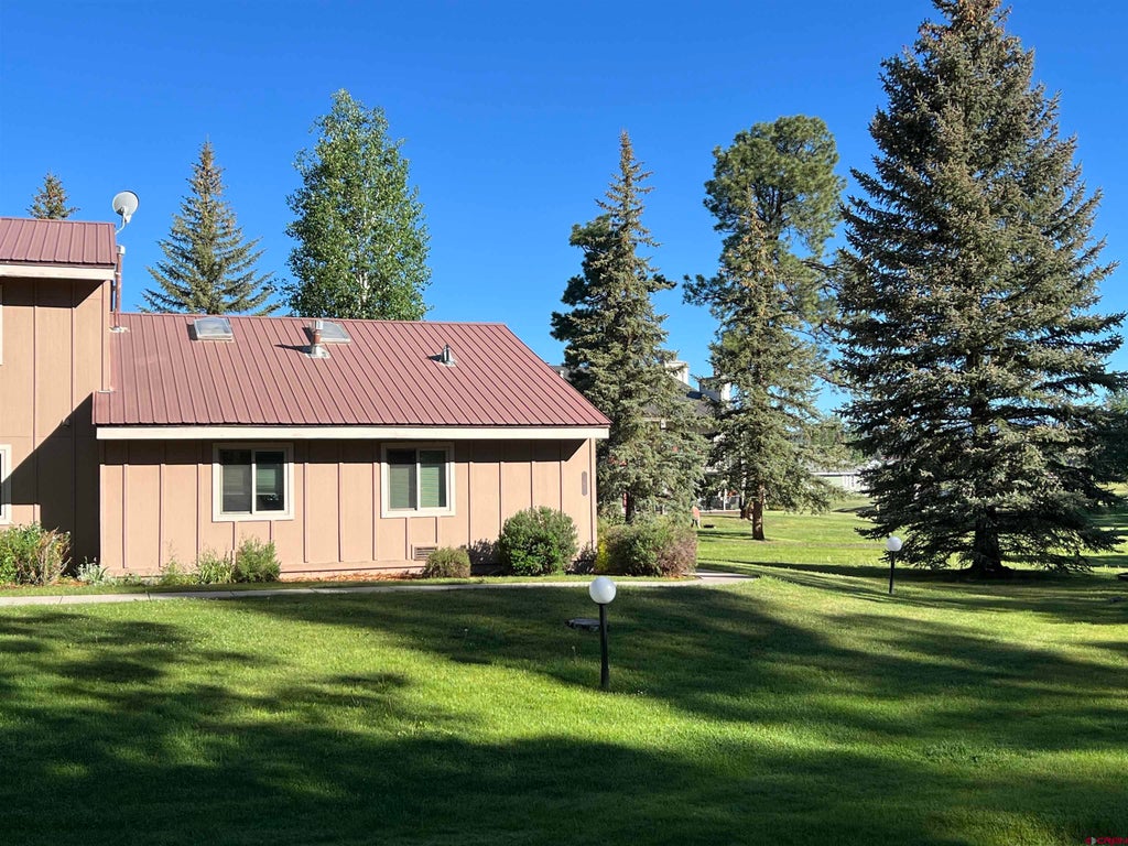 Great fully furnished (turn key) end unit condo within walking distance to restaurants, grocery store, tennis court, recreation center and coffee shops. 1486 sf, 2 bedroom, 3 bath + open loft area currently set up with 2 twin beds and 3/4 bath on the upper level. Cozy unit with sunken living room, corner fireplace and sliding door to the deck with nice mountain views. Open kitchen with pass through countertop to dining room. Primary bedroom on the main level with full bath. Guest bedroom also on the main level with built in book case and 2nd guest full bath. The condo is surrounded by beautiful mature Ponderosa Pine and Blue Spruce. Lots of open space around the unit and San Juan Mountain views.This condo has been used as a Short Term Rental. The license is not transferrable, new owner would need to apply for a new STR license. Monthly HOA dues include, water, sewer, trash, exterior maintenance, snow removal, exterior insurance.